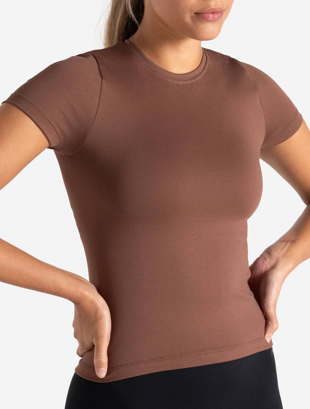 Discover the Sculpt Seamless T-Shirt in Cocoa Brown. Perfect for day-to-day activities, it offers a sleek, minimal design that combines comfort and style. Shop now.