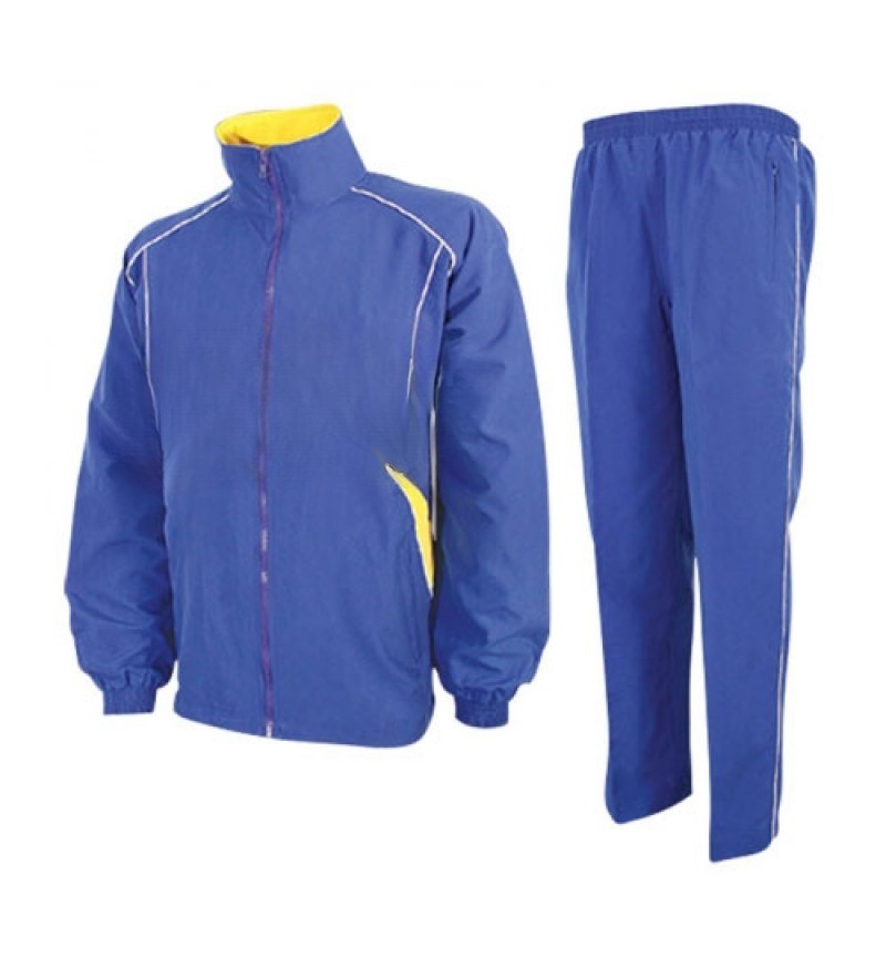 Track Suit is made from 100% polyester. The top features strong zippers, cuffs and jacket bottom are ribbed for a secure traditional athletic track suit fit. The pants feature an elastic waist, with d..