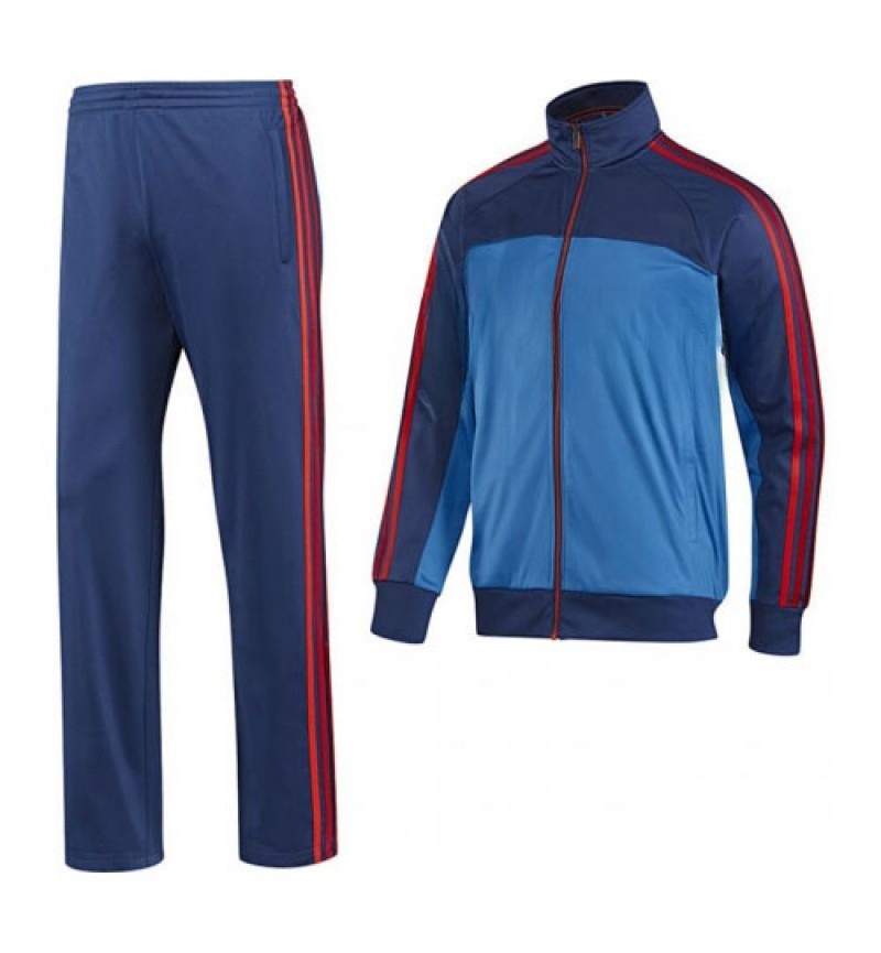 Track Suit is made from 100% polyester. The top features strong zippers, cuffs and jacket bottom are ribbed for a secure traditional athletic track suit fit. The pants feature an elastic waist, with drawstring and attractive side striping from waist to ankle. This sportswear is great for warming up or everyday use!